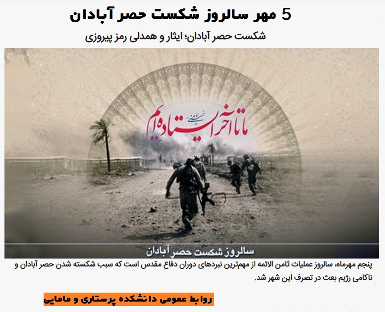 5 مهر گرامیداشت سالروز شکست حصر آبادان 1404/07/05 - 13:12 - تعداد بازدید: 61 - کد خبر : 21418 - گروه خبری : گروه های مطالب,عمومی,خبر تصویری - تعداد نظرات : 0 5 مهر گرامیداشت سالروز شکست حصر آبادان کپی لینک کوتاه