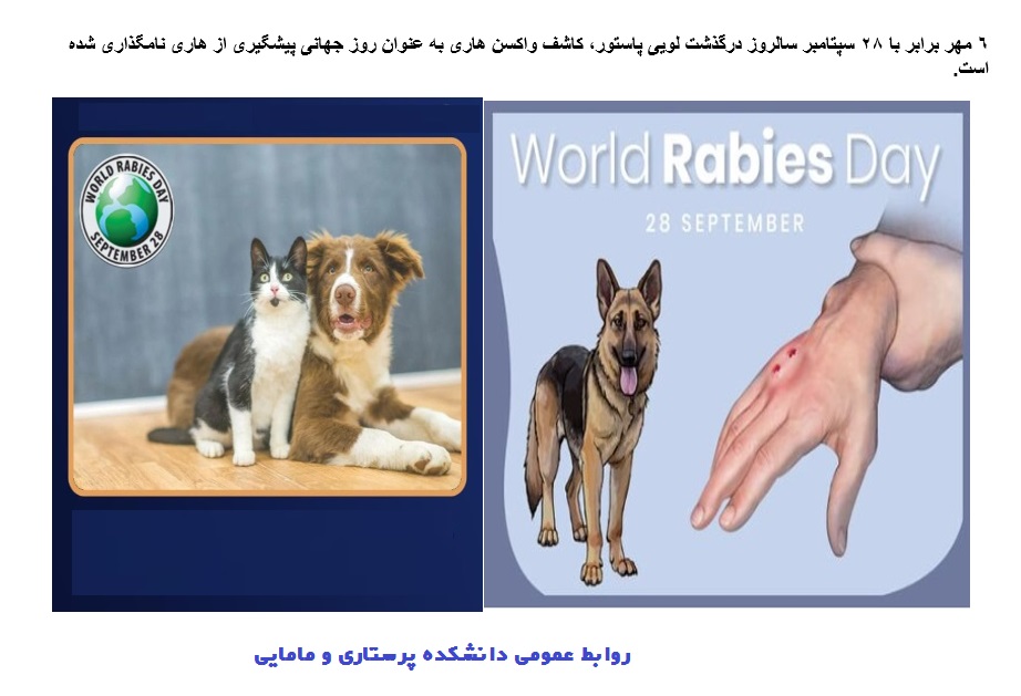 6 مهر برابر با 28 سپتامبر ،سالروز درگذشت لویی پاستور به عنوان روز جهانی پیشگیری از هاری نامگذاری شده است.